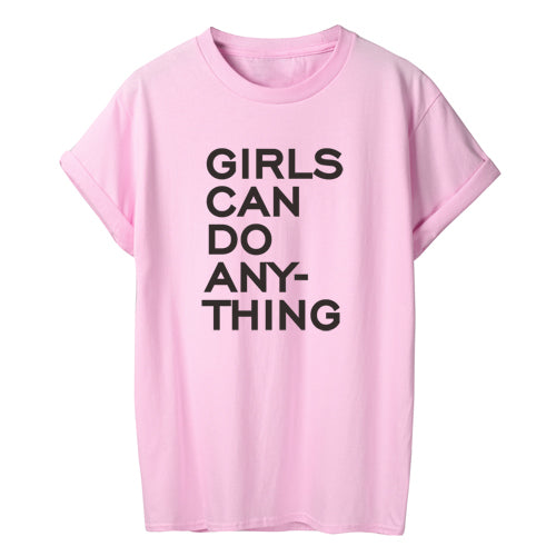T-shirt Streetwear décontracté en coton "Girls Can Do Anything"