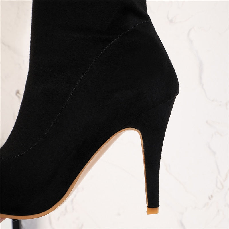 Bottines chaussettes aux coloris variés, conçues pour sublimer votre silhouette avec leurs talons pointus de 10 cm. Disponibles du 32 au 48, ces chaussures allient élégance et confort grâce à leur coupe ajustée de type chaussette. Parfaites pour les occasions spéciales ou pour affirmer votre style au quotidien, elles offrent une tenue impeccable et une allure sophistiquée. Un incontournable pour compléter vos tenues avec assurance.