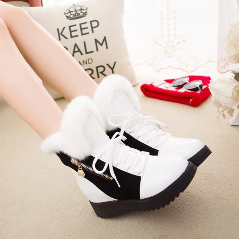 Bottines-tendance actuelle-fourrées pour l'hiver vernies blanches ou noires-style-fermeture zip