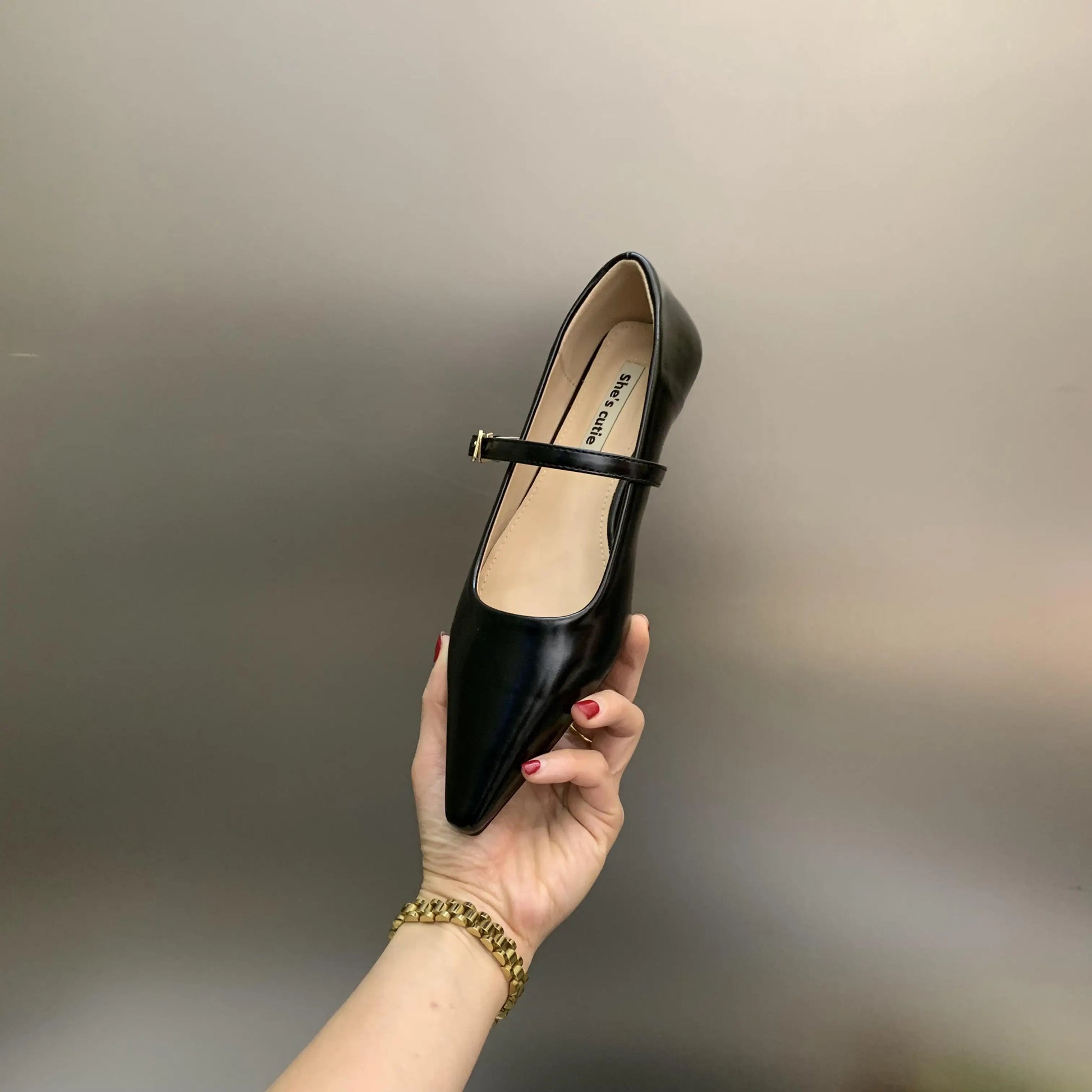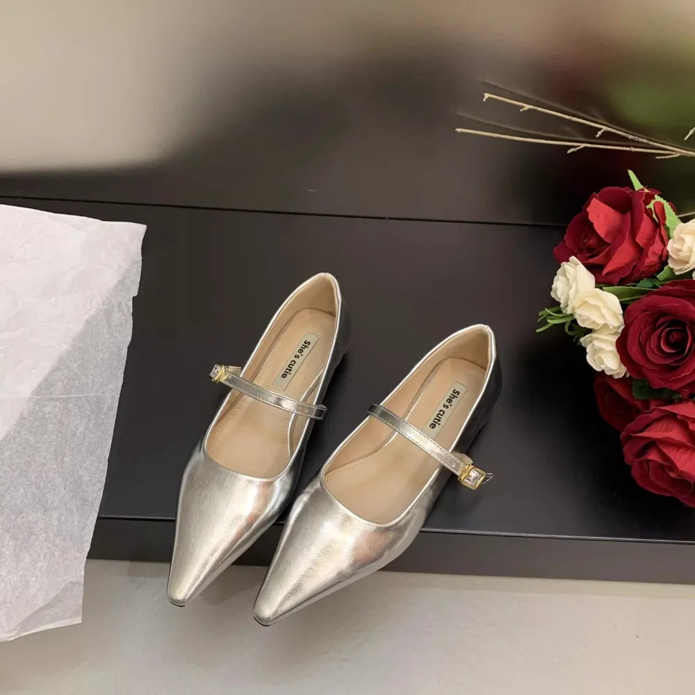 Chaussures ballerines pointues argentées, blanches ou noires tendance mode en cuir artificiel à semelle plate
