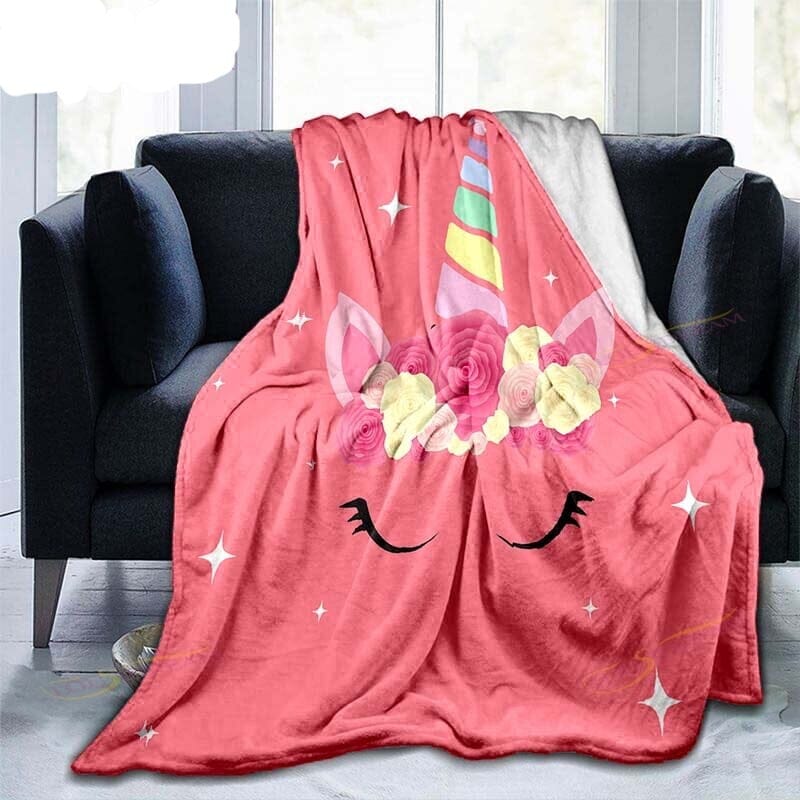 Couverture Licorne imprimé douces couleurs en flanelle couvre-lit