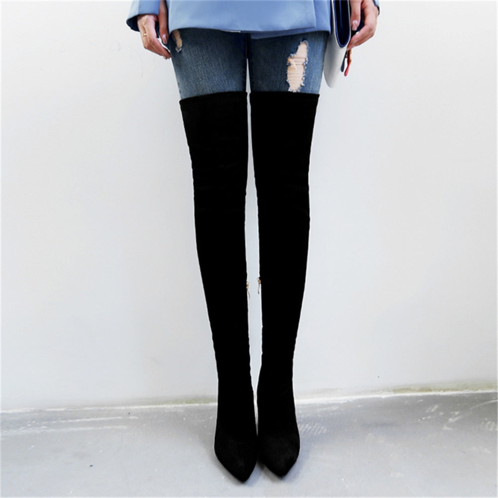 cuissardes bottes montantes au dessus du genou sexy 31-43 talons hauts bout pointu