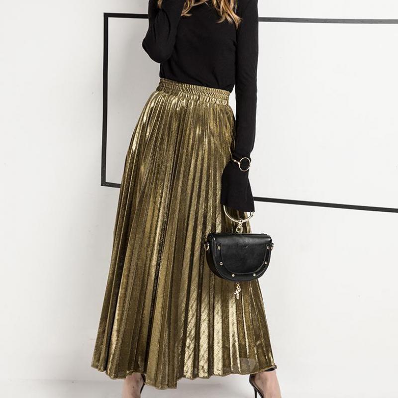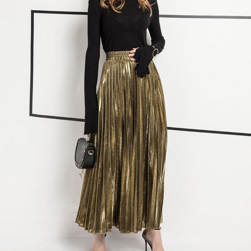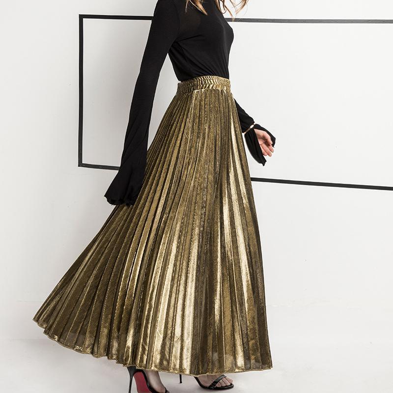 Jupe Longue Couleur Argent ou Or ll-match Slim Jupe Plissée