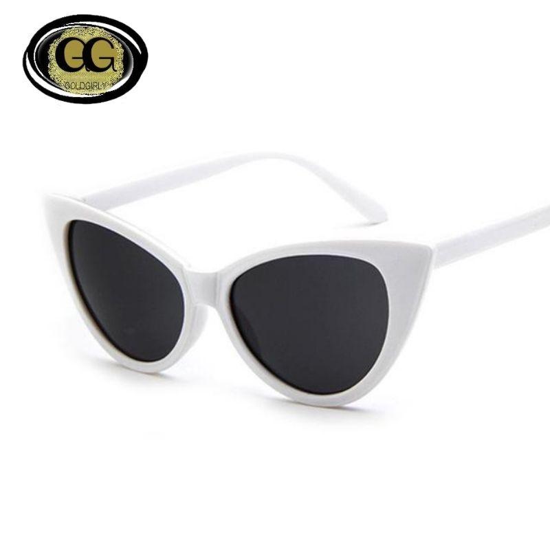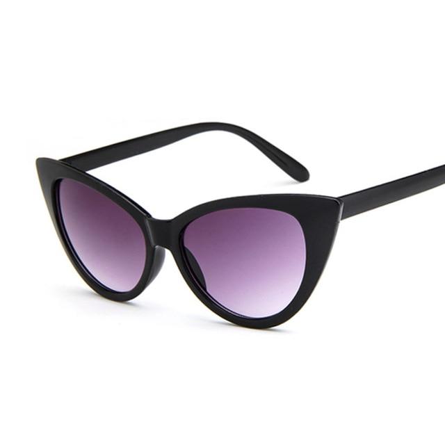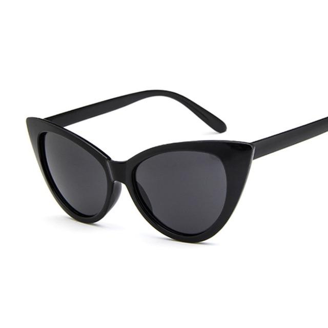 Lunettes de soleil Cat Eye Femmes Vintage Marque Designer en plastique Rétro Noir