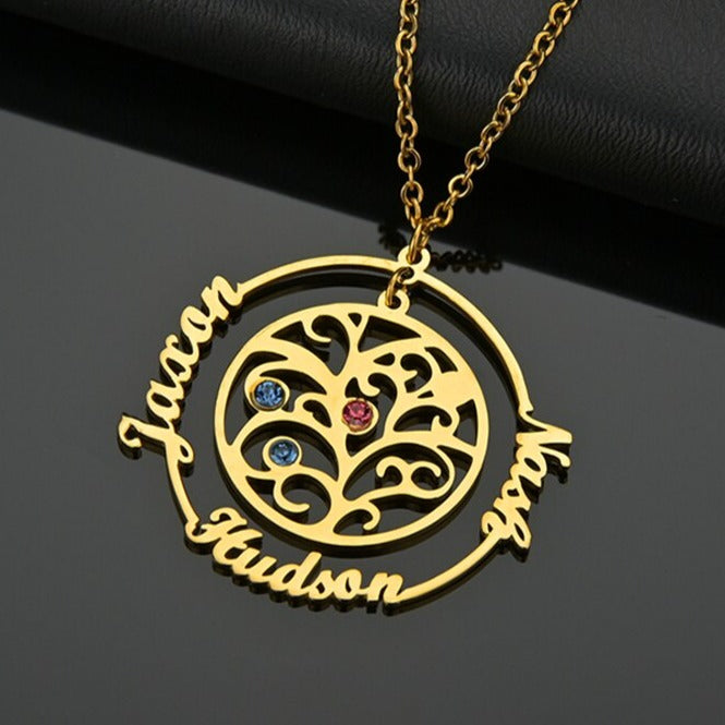 Pendentif personnalisé : L'arbre choisissez jusqu'à 6 prénoms et 6 pierres💎